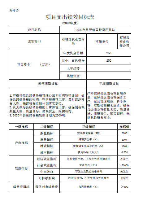 縣級儲備糧費用補貼項目根據(jù)《石城縣縣級儲備糧管理辦法》(石府發(fā)[2012]17號)文件,由縣財政按季預(yù)撥縣級儲備糧費用補貼,年終進行結(jié)算,多退少補。