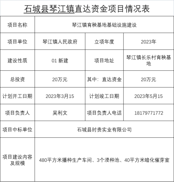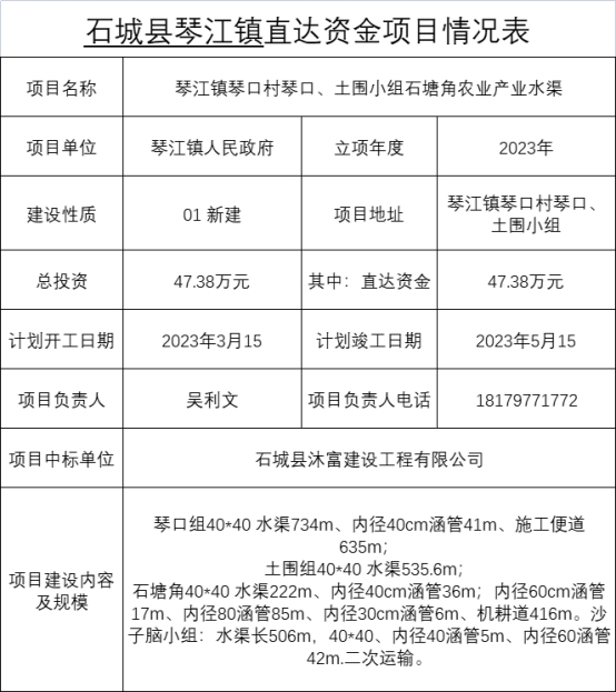 石城縣琴江鎮(zhèn)2023年財(cái)政直達(dá)資金信息公開