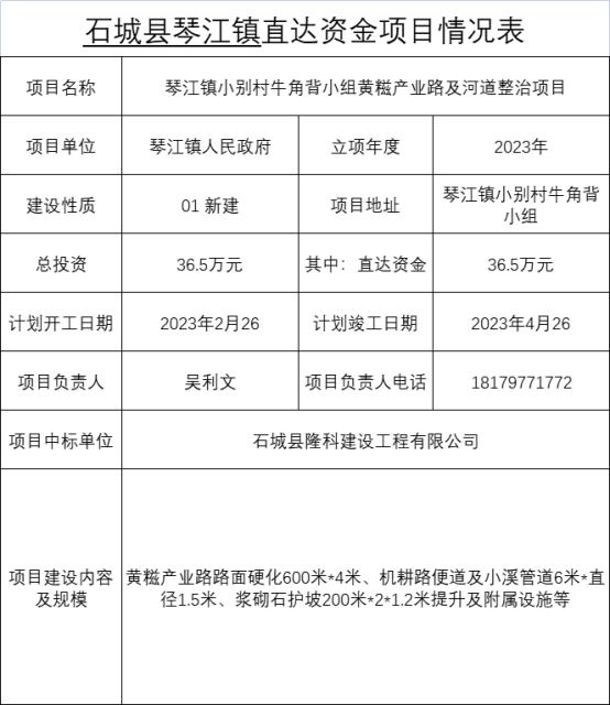 琴江鎮(zhèn)小別村牛角背小組黃糍產(chǎn)業(yè)路及河道整治項(xiàng)目 |