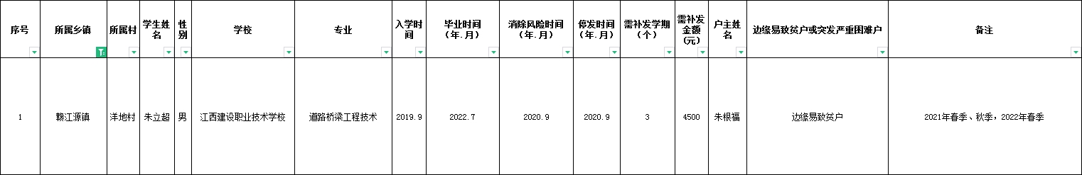 贛江源鎮(zhèn)防止返貧監(jiān)測(cè)對(duì)象消除風(fēng)險(xiǎn)后雨露計(jì)劃補(bǔ)助補(bǔ)發(fā)對(duì)象花名冊(cè)發(fā)放明細(xì)表
