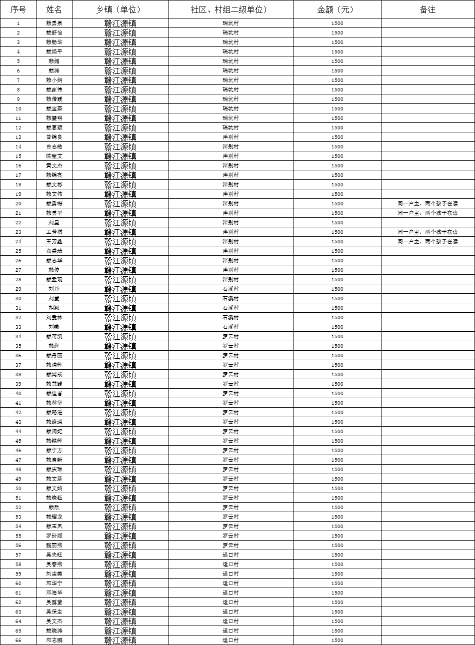 2023年石城縣贛江源鎮(zhèn)撥付2023年春季學(xué)期“雨露計劃”職業(yè)教育申報補助資金對象發(fā)放明細表