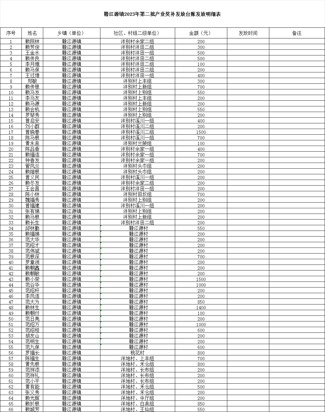 贛江源鎮(zhèn)2023年第二批產(chǎn)業(yè)獎(jiǎng)補(bǔ)發(fā)放臺(tái)賬發(fā)放明細(xì)表