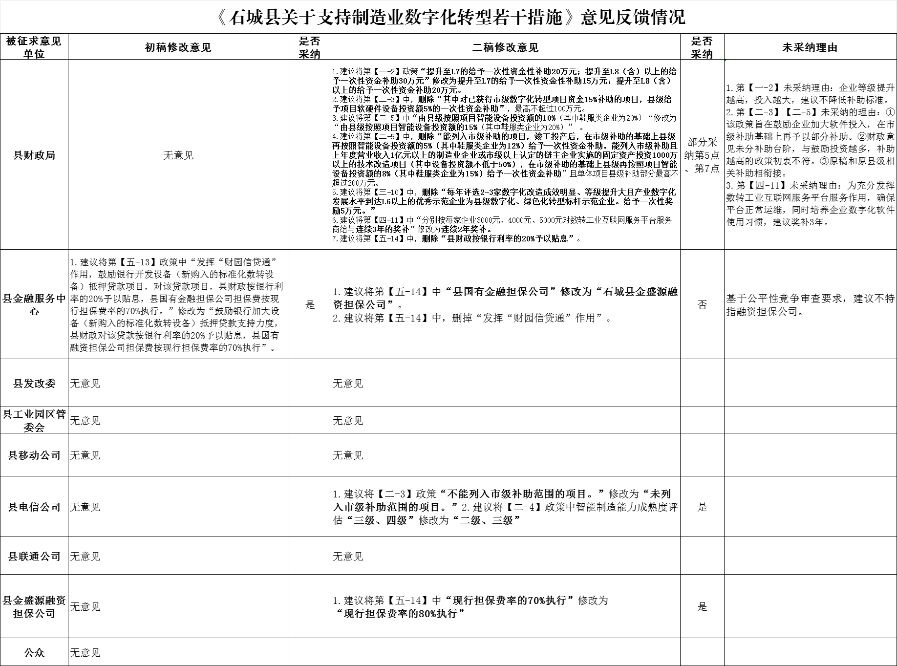 [意見反饋]《石城縣關(guān)于支持制造業(yè)數(shù)字化轉(zhuǎn)型若干措施》意見反饋情況