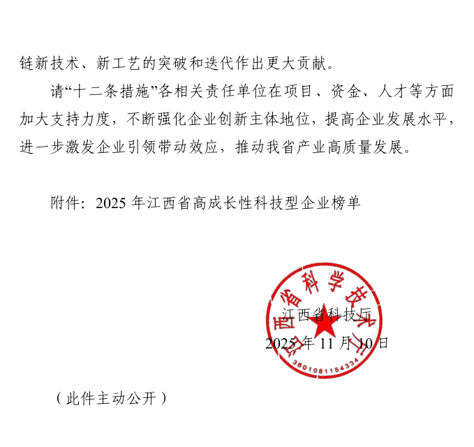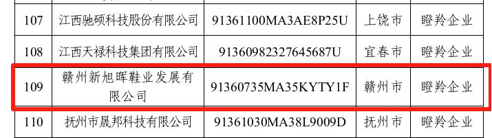 近日,江西省科技廳公布了2025年江西省高成長性科技型企業(yè)入選名單,我縣贛州新旭暉鞋業(yè)發(fā)展有限公司入選江西省瞪羚企業(yè),這是我縣首家企業(yè)入選省級瞪羚企業(yè)。