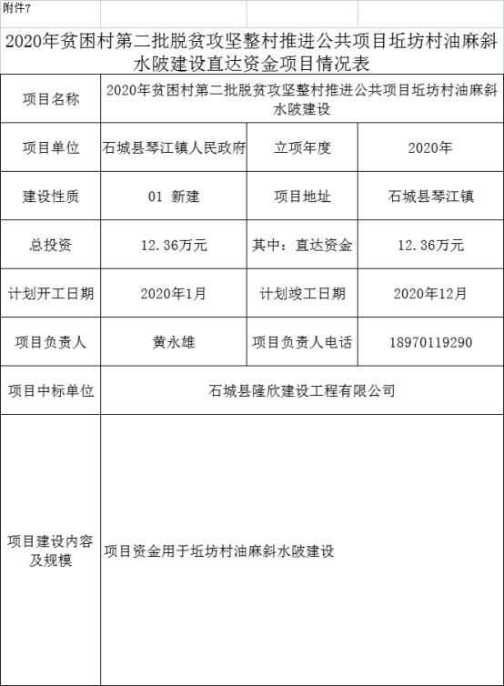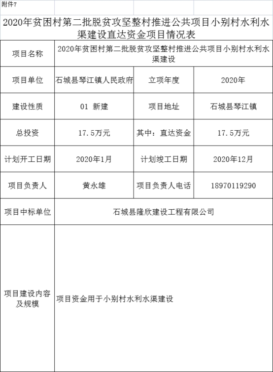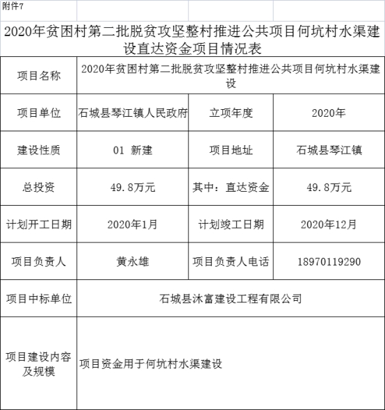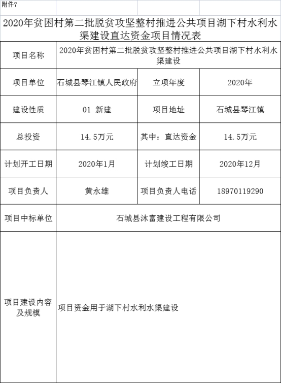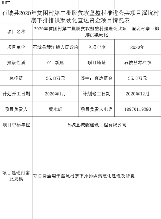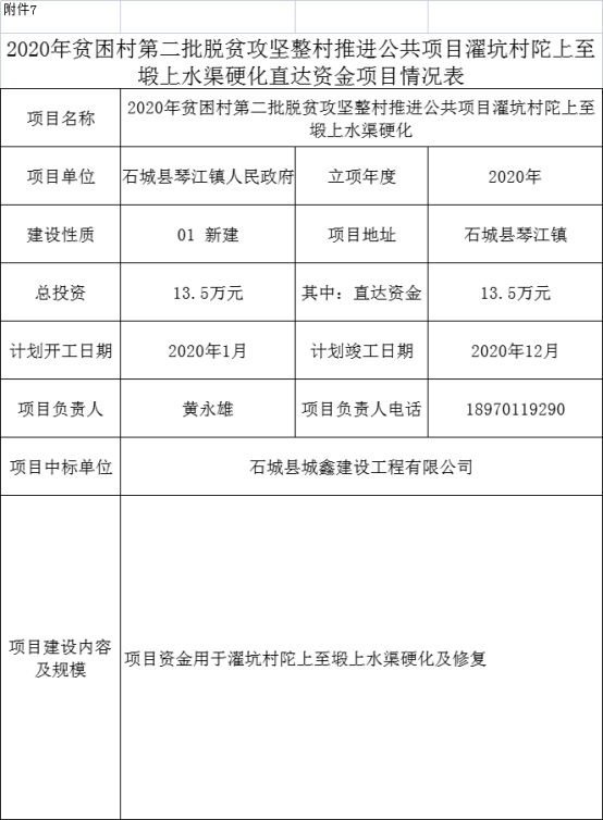 石城縣琴江鎮(zhèn)2020年貧困村第二批脫貧攻堅整村推進公共項目 |