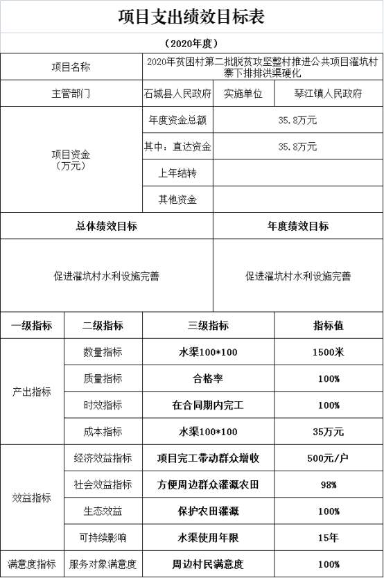 第四部分、項目支出績效目標表