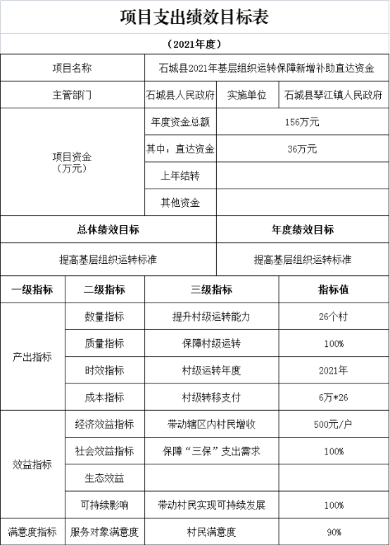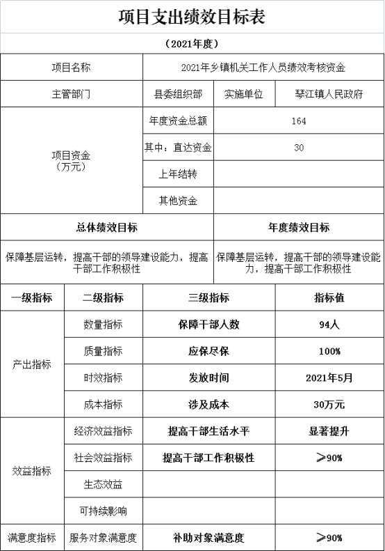 根據(jù)石財鄉(xiāng)指[2021]2號文件撥付石城縣琴江鎮(zhèn)人民政府2021年鄉(xiāng)鎮(zhèn)機關工作人員績效考核直達資金共計30萬元。