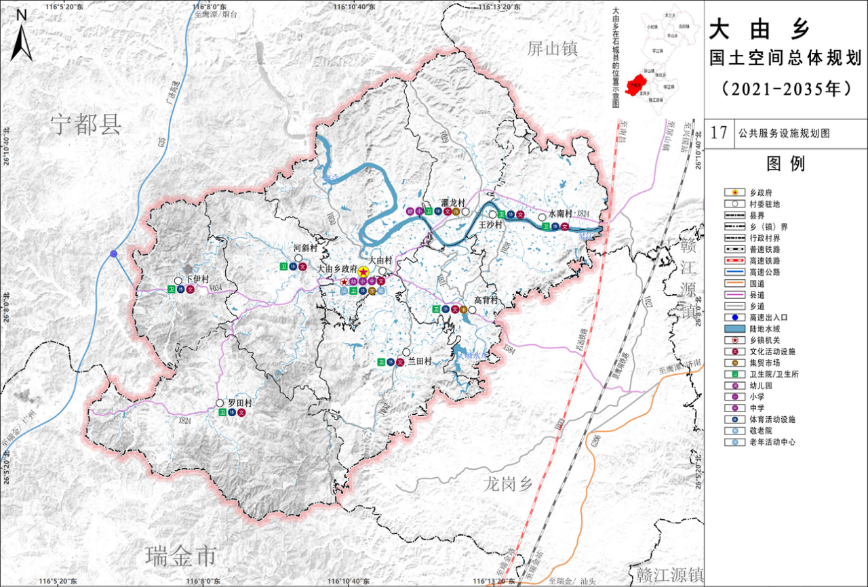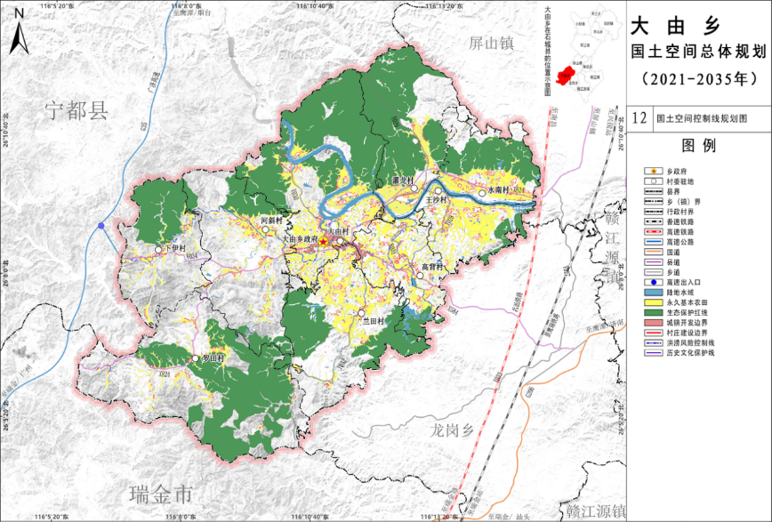 為貫徹《中共中央國務(wù)院關(guān)于建立國土空間規(guī)劃體系并監(jiān)督實施的若干意見》《中共江西省委江西省人民政府關(guān)于建立全省國土空間規(guī)劃體系并監(jiān)督實施的意見》等有關(guān)要求,特編制《大由鄉(xiāng)國土空間總體規(guī)劃(2021-2035年)》?,F(xiàn)根據(jù)有關(guān)法律要求,對該規(guī)劃進(jìn)行公示,公示時間三十天,敬請廣大群眾關(guān)注,提出寶貴意見并將意見在公示期間反饋至大由鄉(xiāng)人民政府。