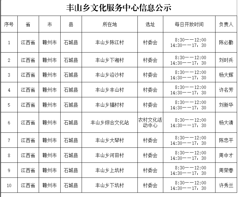 豐山鄉(xiāng)文化服務(wù)中心信息公示