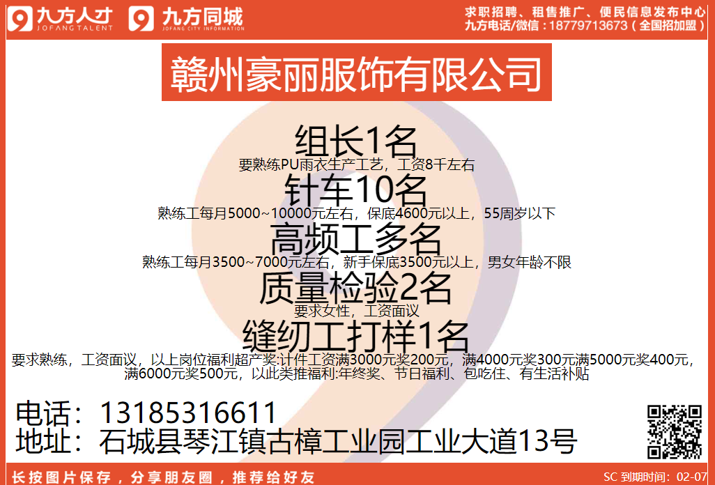 [崗位招聘]贛州豪麗服飾有限公司