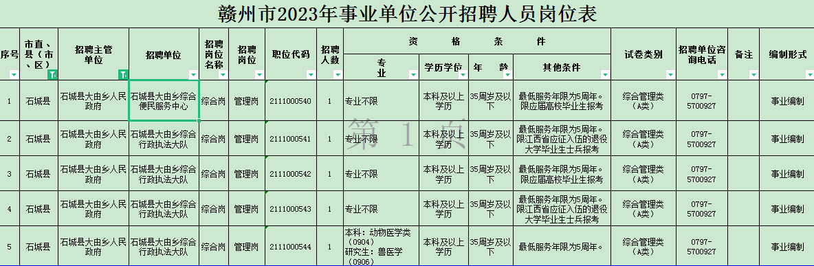 有編,“職”等你來,石城縣大由鄉(xiāng)人民政府招聘5人!