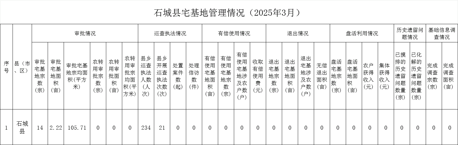 石城縣宅基地管理情況(2025年3月)