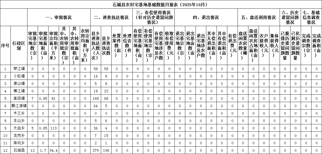 石城縣農(nóng)村宅基地基礎(chǔ)數(shù)據(jù)月報表(2025年10月)