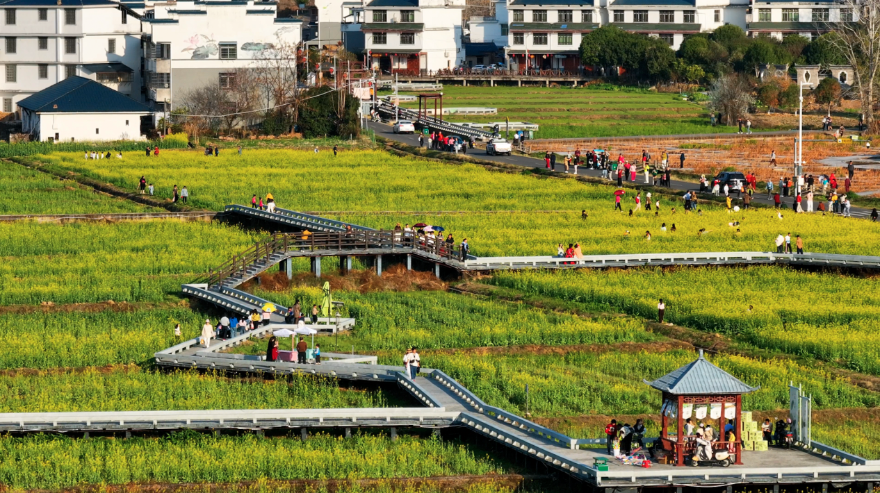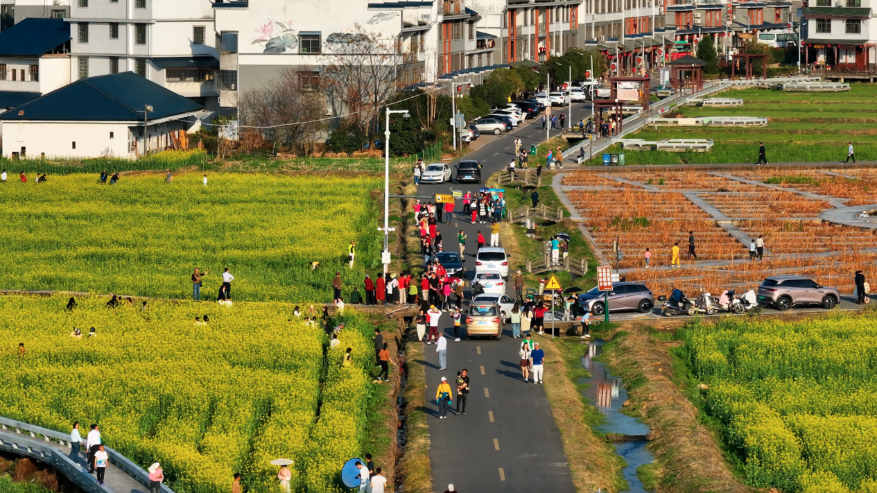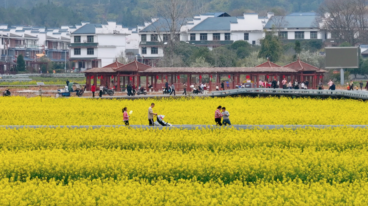 國家4A級旅游景區(qū)通天寨腳下,一條干凈整潔的景觀大道直通村落,道路兩旁滿眼是金黃璀璨的油菜花,恰似給大地披上了華貴的金縷衣。微風(fēng)吹過,花浪起伏,空氣中滿是甜絲絲的花粉香。