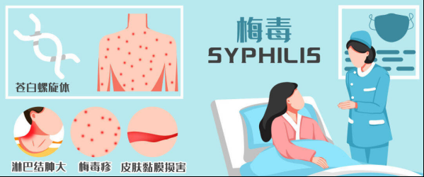 2.梅毒:由梅毒螺旋體引起的一種性傳播疾病,主要通過性接觸、母嬰傳播和血液傳播。早期主要侵犯皮膚黏膜,晚期可侵犯血管、中樞神經(jīng)系統(tǒng)及全身各器官,是一種復(fù)雜的全身性疾病。如果梅毒孕產(chǎn)婦沒有及時治療,傳染給胎兒的可能性很大,甚至危及生命。