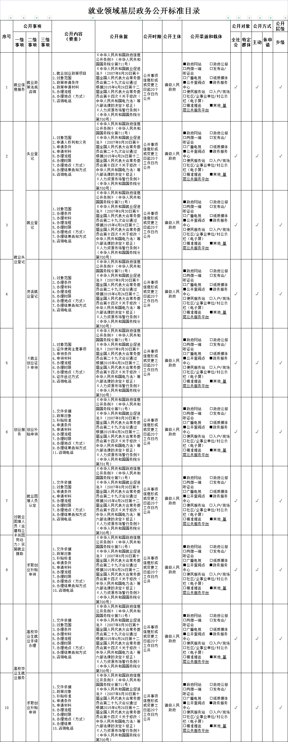 琴江鎮(zhèn)就業(yè)領(lǐng)域基層政務(wù)公開標準目錄