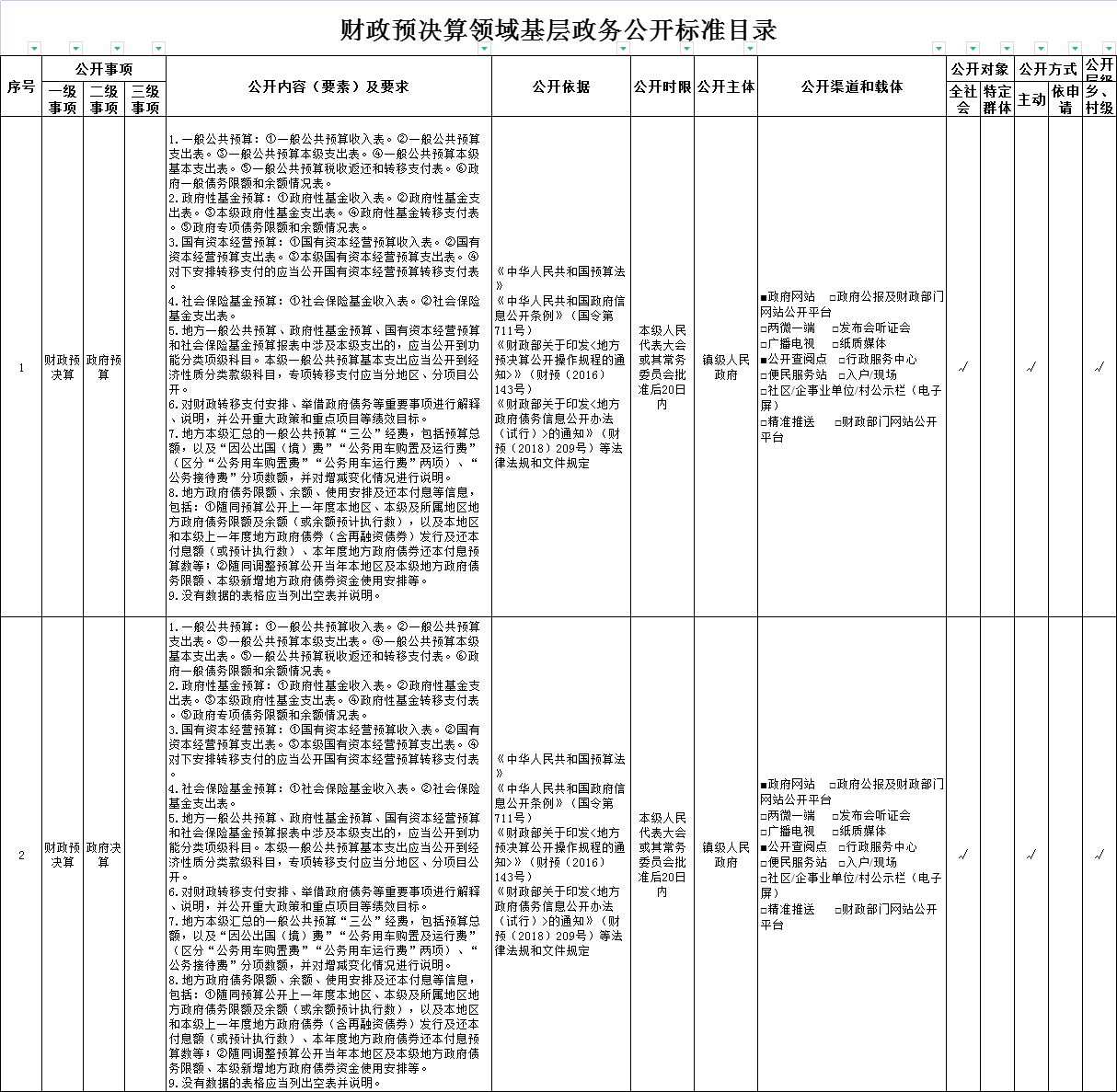 琴江鎮(zhèn)財(cái)政預(yù)決算領(lǐng)域基層政務(wù)公開(kāi)標(biāo)準(zhǔn)目錄