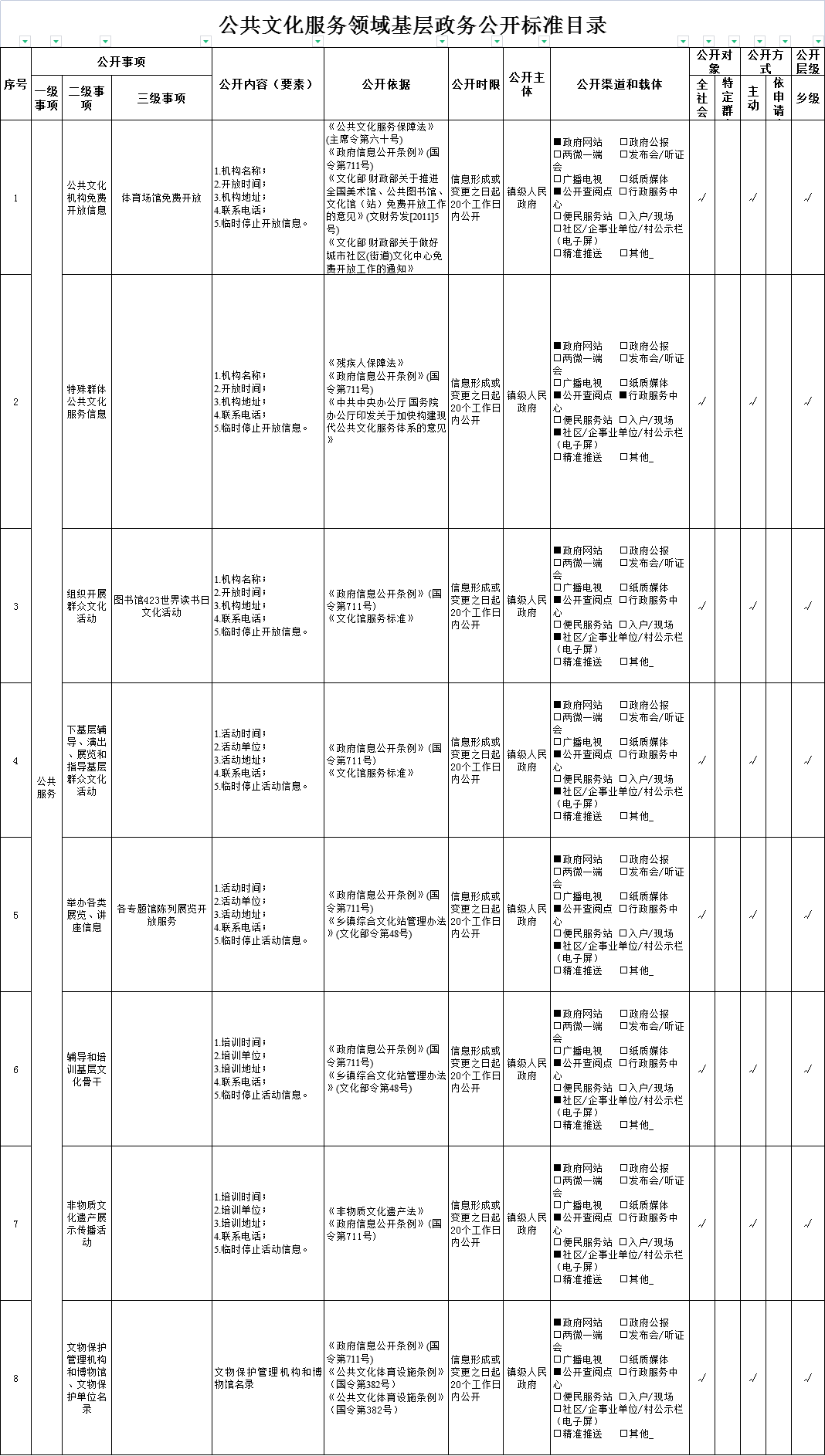 琴江鎮(zhèn)公共文化服務領(lǐng)域基層政務公開標準目錄