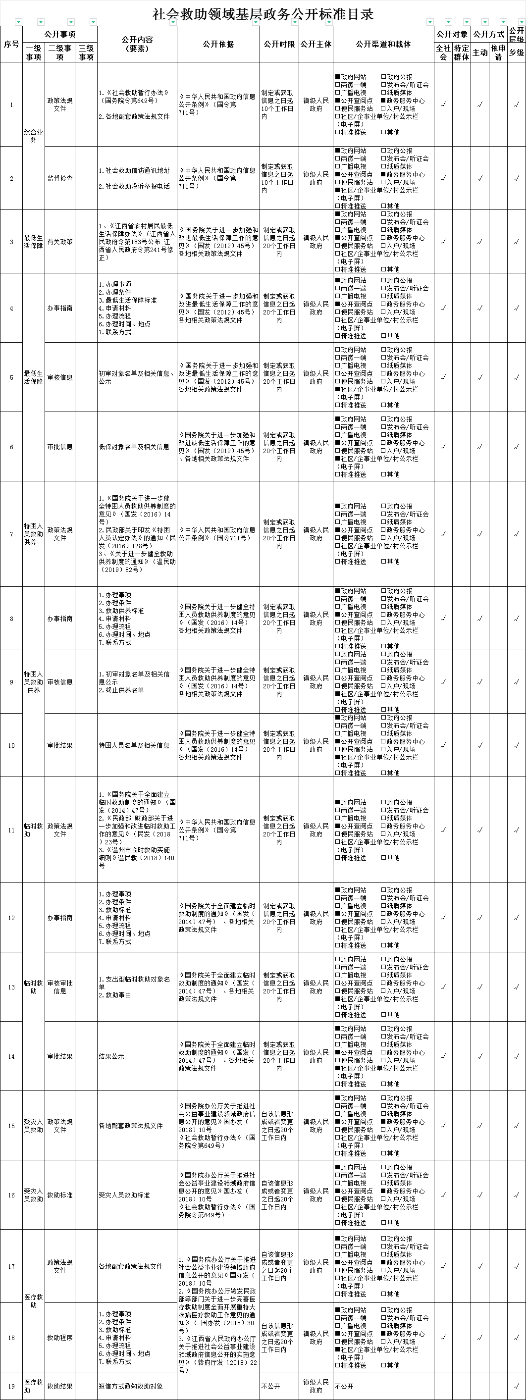 琴江鎮(zhèn)社會(huì)救助領(lǐng)域基層政務(wù)公開標(biāo)準(zhǔn)目錄