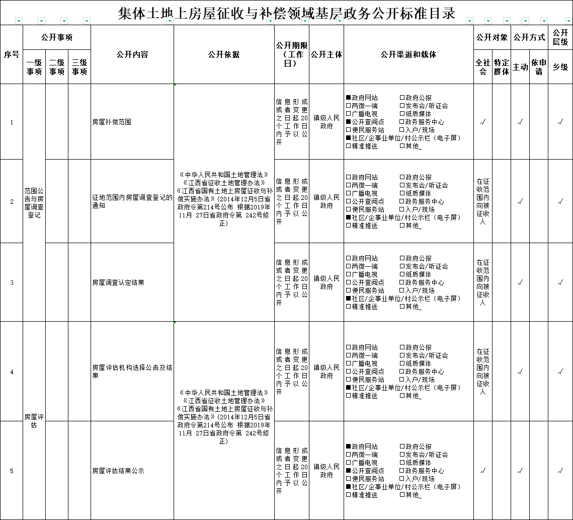 橫江鎮(zhèn)集體土地上房屋征收與補(bǔ)償領(lǐng)域基層政務(wù)公開標(biāo)準(zhǔn)目錄