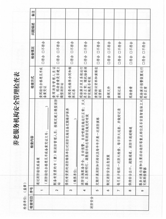 石城縣養(yǎng)老機(jī)構(gòu)安全大檢查安排表