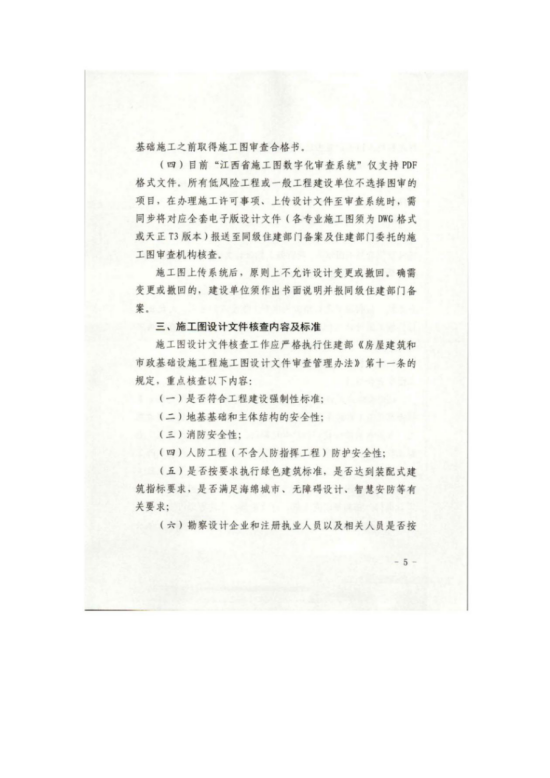 (二)加強(qiáng)工程項(xiàng)目建設(shè)安全管控。所有工程項(xiàng)目須在基礎(chǔ)施工前通過施工圖審查(核查),取得施工圖審查(核查)合格書。建設(shè)單位在取得施工許可后、取得施工圖審查(核查)合格書前,在滿足安全生產(chǎn)條件的前提下,可以按規(guī)定開展拆除舊有建構(gòu)筑物、平整場地、基坑開挖和支護(hù)、開通施工用臨時(shí)道路和水電等工作,但不得進(jìn)行工程項(xiàng)目基礎(chǔ)施工。