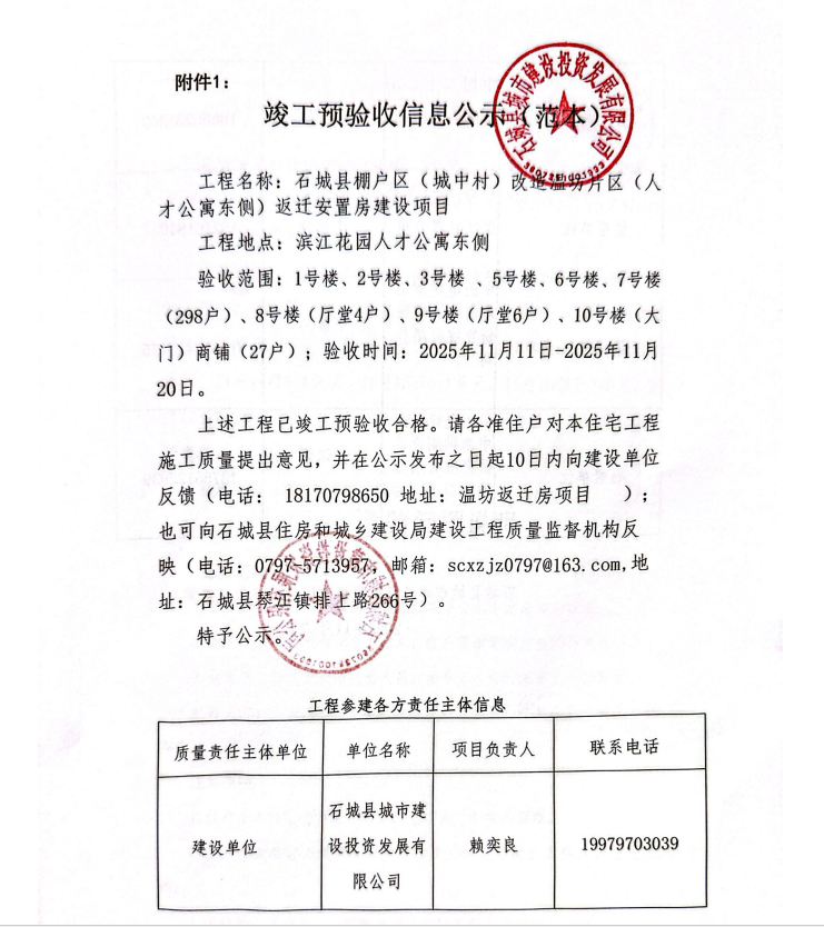 石城縣人民政府 | 溫坊返遷房竣工驗收信息公示