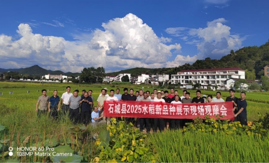 近日,石城縣農(nóng)業(yè)農(nóng)村局在珠坑鄉(xiāng)珠坑村組織開展2025年晚稻新品種展示現(xiàn)場(chǎng)觀摩會(huì)。各鄉(xiāng)(鎮(zhèn))分管領(lǐng)導(dǎo)、農(nóng)業(yè)干事、種植大戶和縣種子經(jīng)營(yíng)戶代表等50余人參加觀摩。