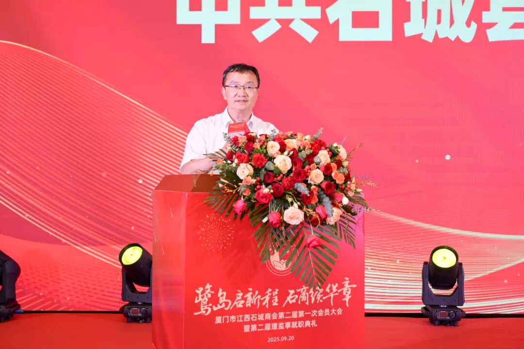張小川指出,廈門市石城商會自成立以來,情系桑梓、反哺家鄉(xiāng),在招商引資、產(chǎn)業(yè)協(xié)作、公益慈善等方面獻(xiàn)智出力,成為推動石城高質(zhì)量發(fā)展的重要力量。希望大家繼續(xù)深耕主業(yè),做追求卓越的奮斗者。始終把握發(fā)展大勢,把主業(yè)做精,把事業(yè)做強,把市場拓寬,不斷開創(chuàng)個人事業(yè)的新高峰;積極發(fā)揚“實干、誠信”的“實誠”精神,努力打造一流企業(yè)、爭創(chuàng)一流品牌,讓石城籍企業(yè)家都成為行業(yè)領(lǐng)域的標(biāo)桿。希望大家聚焦石城,做產(chǎn)業(yè)發(fā)展的賦能者。帶著資源、帶著項目回鄉(xiāng)考察投資,我們將以最優(yōu)惠的政策、最優(yōu)質(zhì)的服務(wù)、最優(yōu)越的環(huán)境,與大家攜手開拓賽道、共贏未來;也期待大家發(fā)揮“橋梁紐帶”作用,幫助石城企業(yè)對接高端技術(shù)、鏈接優(yōu)質(zhì)客戶、拓展國際市場,推動“石城制造”向“石城智造”“石城精造”升級,讓石城產(chǎn)業(yè)在更大舞臺上嶄露頭角。希望大家不忘桑梓,做回饋家鄉(xiāng)的參與者。當(dāng)好家鄉(xiāng)的形象代言人,一如既往地宣傳石城的自然風(fēng)光、產(chǎn)業(yè)優(yōu)勢、營商環(huán)境,積極引薦優(yōu)質(zhì)項目、高端人才回流家鄉(xiāng),讓更多人認(rèn)識石城、走進(jìn)石城、投資石城。同時,也能積極為家鄉(xiāng)的經(jīng)濟社會發(fā)展建言獻(xiàn)策,為石城的公益慈善事業(yè)添磚加瓦,用實際行動回報反哺家鄉(xiāng)。