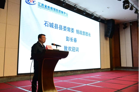 中國(guó)疾控中心研究員劉起勇,贛州市衛(wèi)健委副主任、疾控局局長(zhǎng)趙乘明、贛州市疾控中心主任王小毛、江西省疾控中心傳染病與地方病防治科科長(zhǎng)潘歡弘、石城縣衛(wèi)健委黨組書記、主任王桂成出席活動(dòng),石城縣委常委、統(tǒng)戰(zhàn)部部長(zhǎng)彭長(zhǎng)春致辭。
