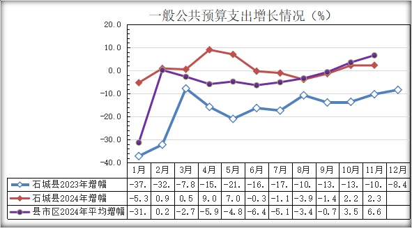 11月份,全縣完成一般公共預(yù)算支出36633萬元,同比增支869萬元,增長2.4%。