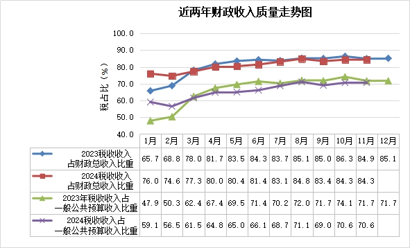 1-11月份,財政收入質(zhì)量依舊穩(wěn)居前列,地方稅收收入占一般公共預(yù)算收入比重70.6%,高于全市縣級平均稅占比8.8個百分點,在全市排位列第4位。