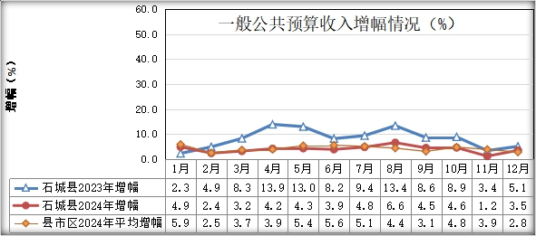 1-12月份,全縣財(cái)政總收入完成159721萬(wàn)元,同比增收5297萬(wàn)元,增長(zhǎng)3.4%;