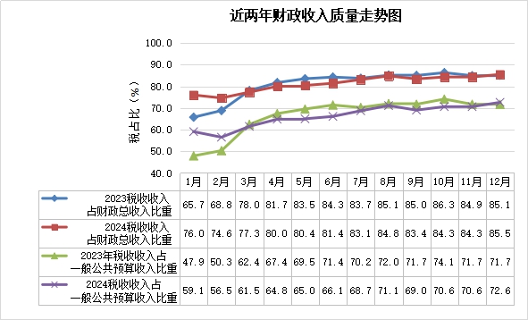 1-12月份,財(cái)政收入質(zhì)量依舊穩(wěn)居前列,地方稅收收入占一般公共預(yù)算收入比重72.6%,高于全市縣級(jí)平均稅占比10個(gè)百分點(diǎn),在全市排位列第4位。