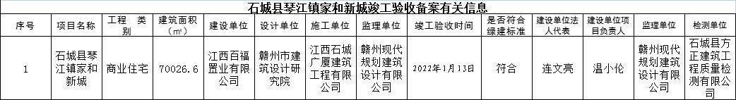 石城縣琴江鎮(zhèn)家和新城竣工驗(yàn)收備案有關(guān)信息