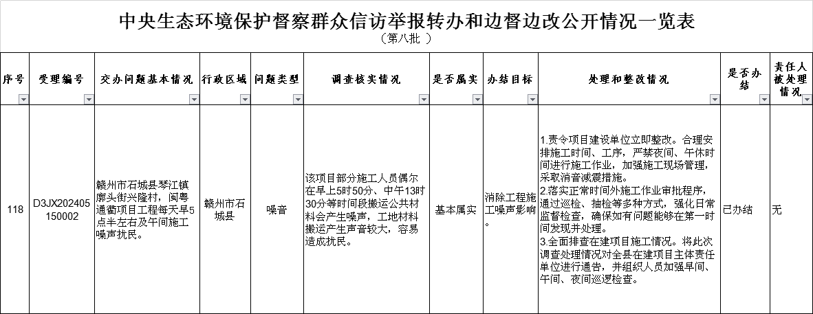 (贛州第八批)附件3群眾信訪舉報(bào)轉(zhuǎn)辦及邊督邊改公開情況一覽表