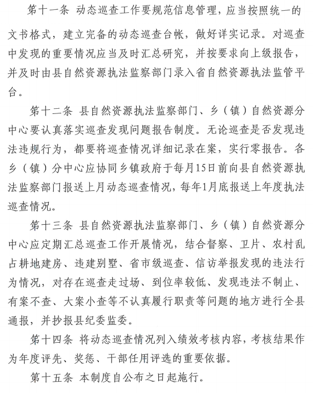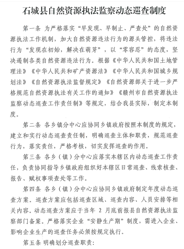 石城縣自然資源執(zhí)法監(jiān)察動態(tài)巡查制度