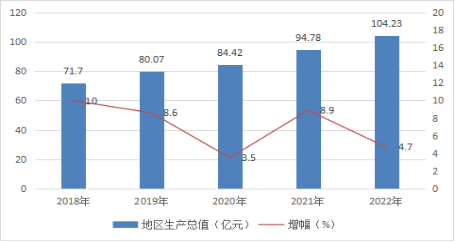 圖1 2018-2022年地區(qū)生產(chǎn)總值及其增長速度