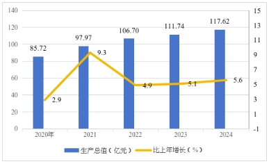 圖1 2020-2024年地區(qū)生產(chǎn)總值及其增長(zhǎng)速度