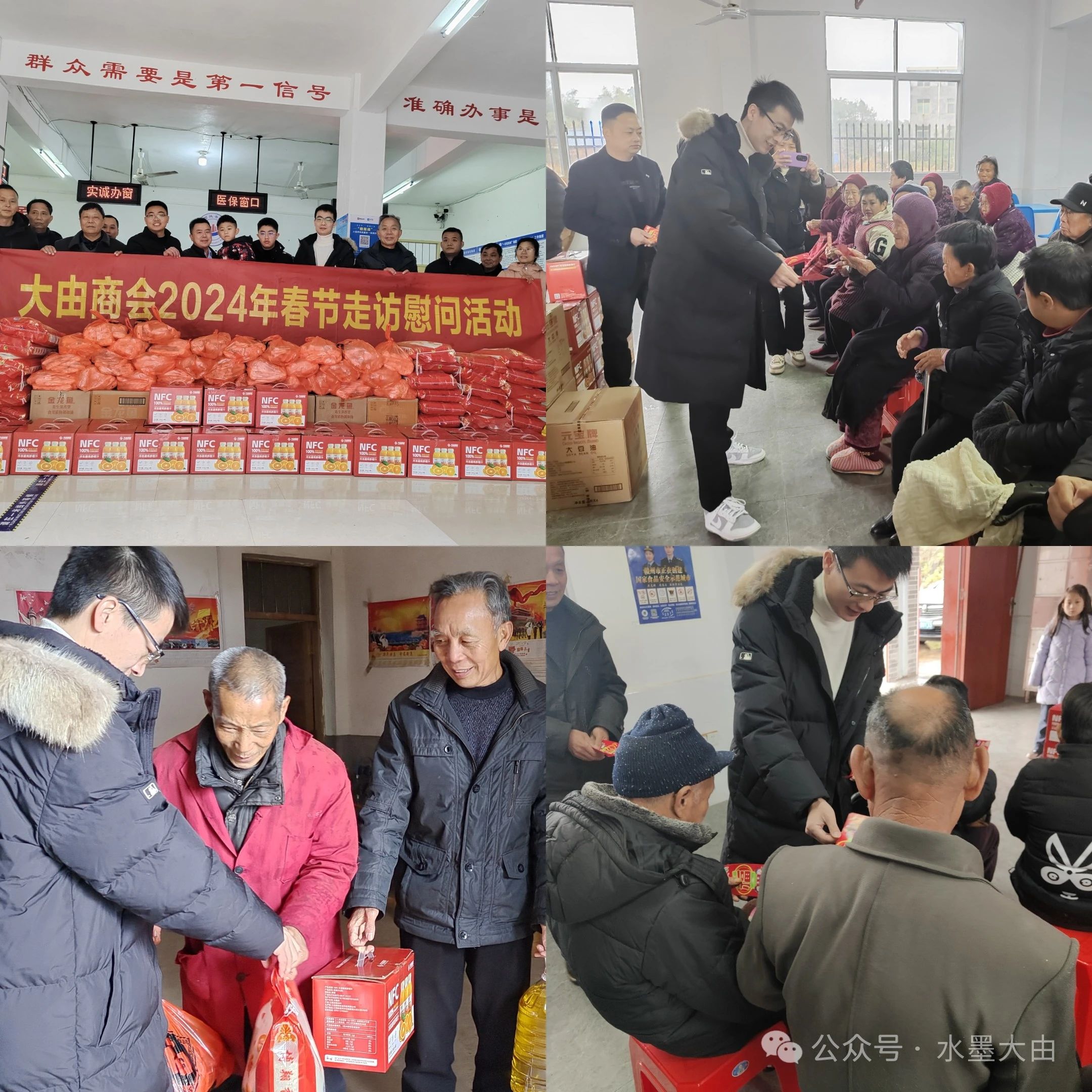 當天上午,大由商會和德都食品還組織人員實地走訪慰問大由鄉(xiāng)敬老院和部分困難群眾,為他們送上慰問紅包和米、油、面條、果汁等物資,表達新春祝福。