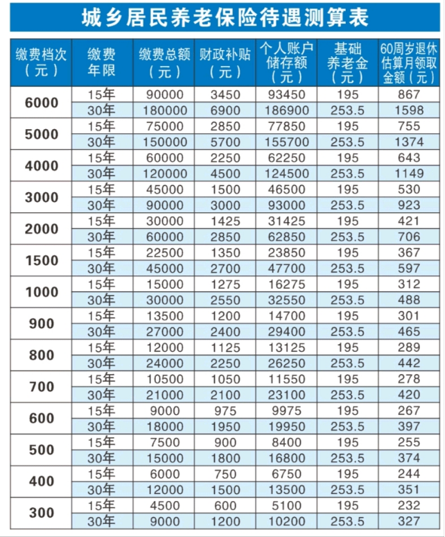 注:基礎(chǔ)養(yǎng)老金標(biāo)準(zhǔn)根據(jù)政策適時調(diào)整,個賬養(yǎng)老金啟領(lǐng)待遇后不再變更;中斷補繳的年度不享受政府補貼。