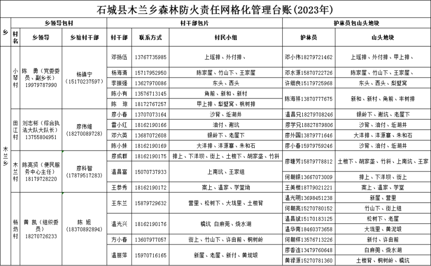 附件:1.木蘭鄉(xiāng)2023森林防火責任網(wǎng)格化管理臺賬
