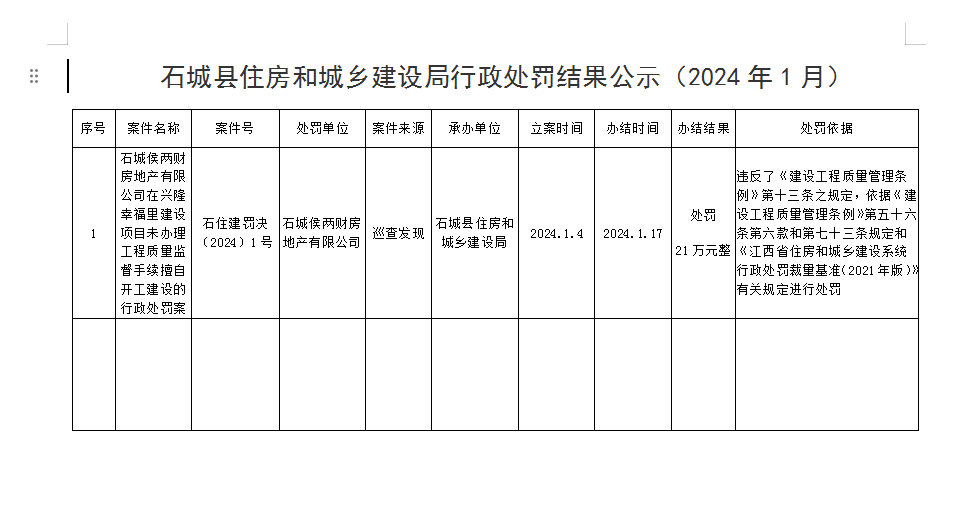 行政處罰結(jié)果公示