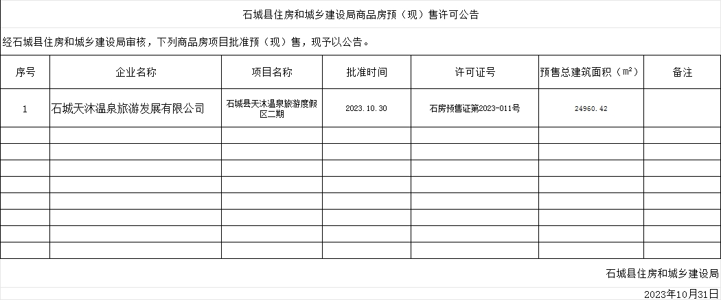 石城縣住房和城鄉(xiāng)建設局商品房預(現(xiàn))售許可公告(10月31日)