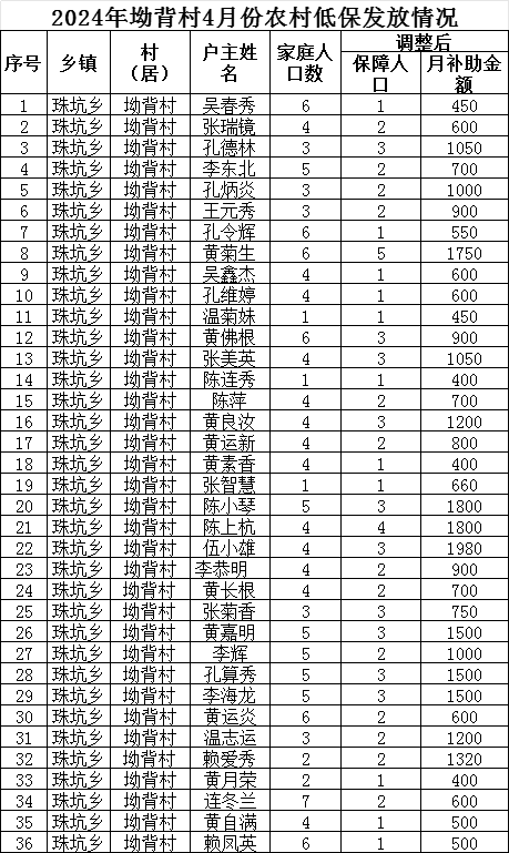 2024年坳背村4月份農(nóng)村低保發(fā)放情況