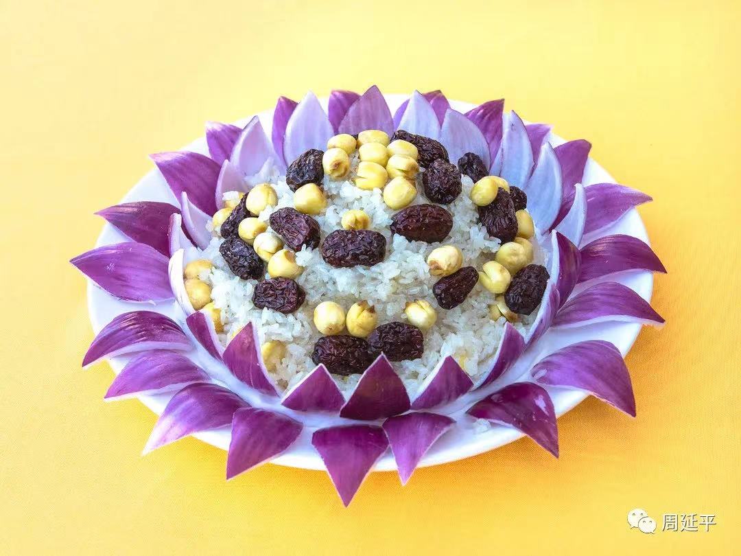 將糯米蒸成米飯,把蜜棗切成厚片,將山楂從中間切開,切成細(xì)條,把切好的山楂條均勻的擺在碗內(nèi)備用。把葡萄干洗凈后,將果脯、葡萄干、蜜棗墊在碗底,將米飯放入盆中,加入剩下的配料,并攪拌均勻,將米飯裝碗上蒸鍋30分鐘即可。