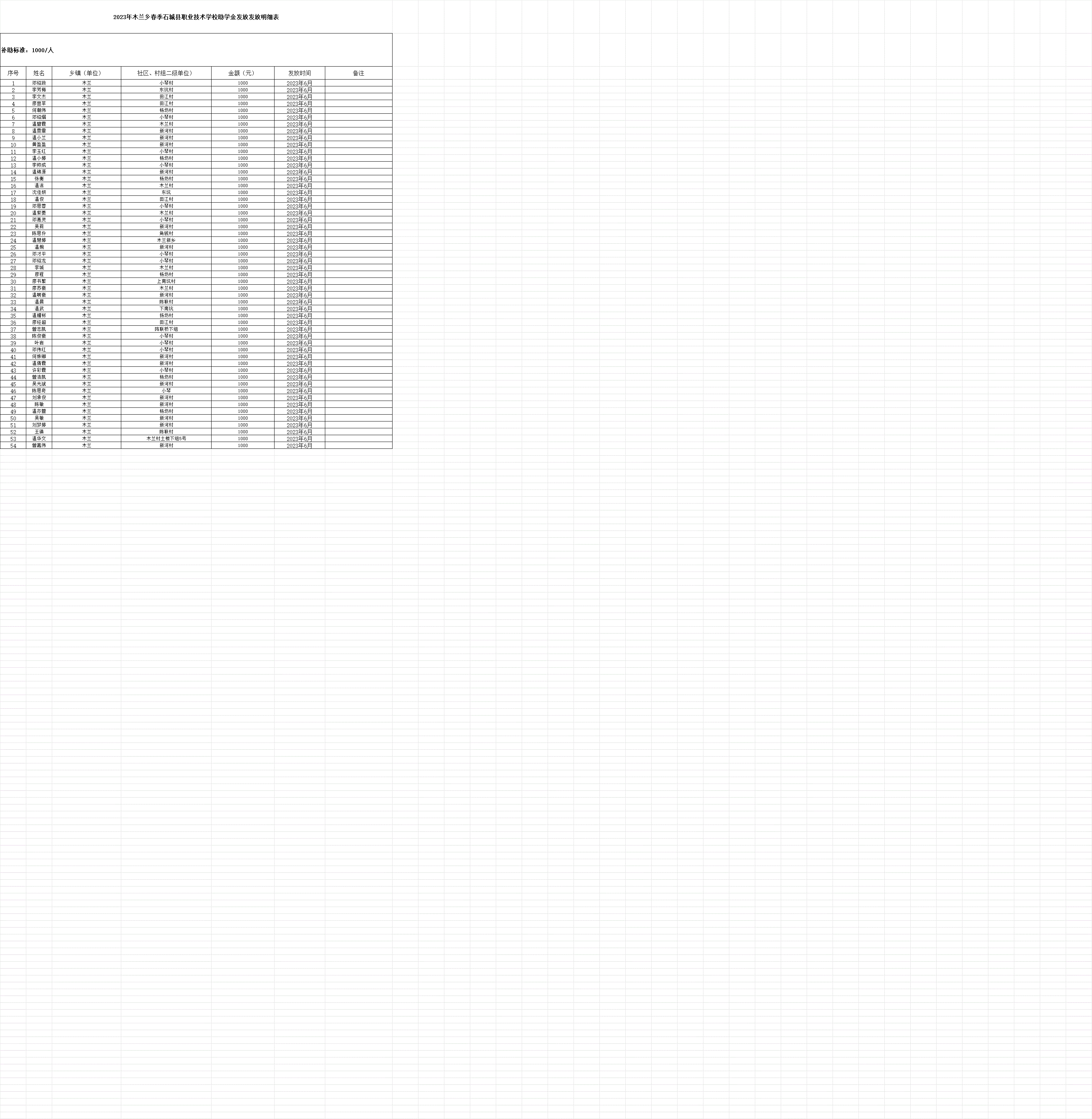 2023年木蘭鄉(xiāng)春季石城縣職業(yè)技術(shù)學校助學金發(fā)放發(fā)放明細表