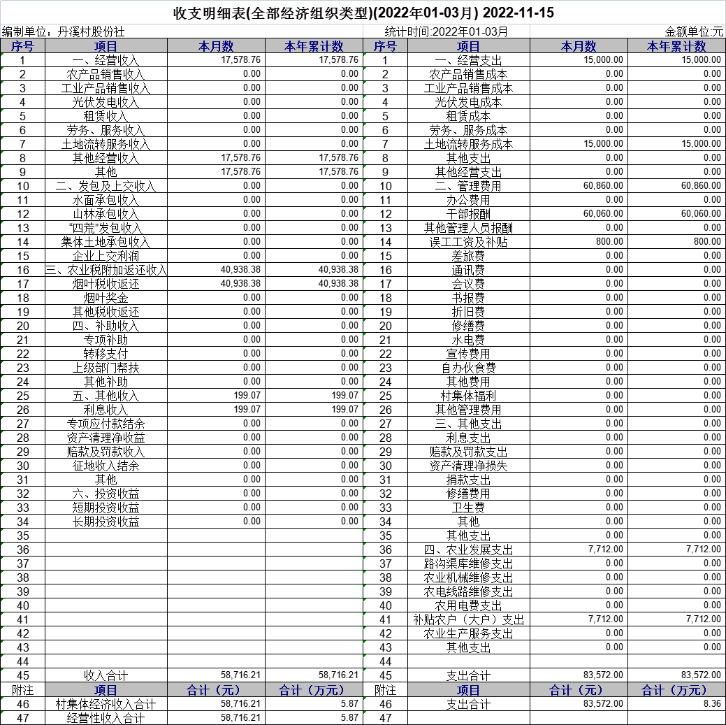 【財務(wù)收支】小松鎮(zhèn)丹溪村2022年1季度財務(wù)收支公示