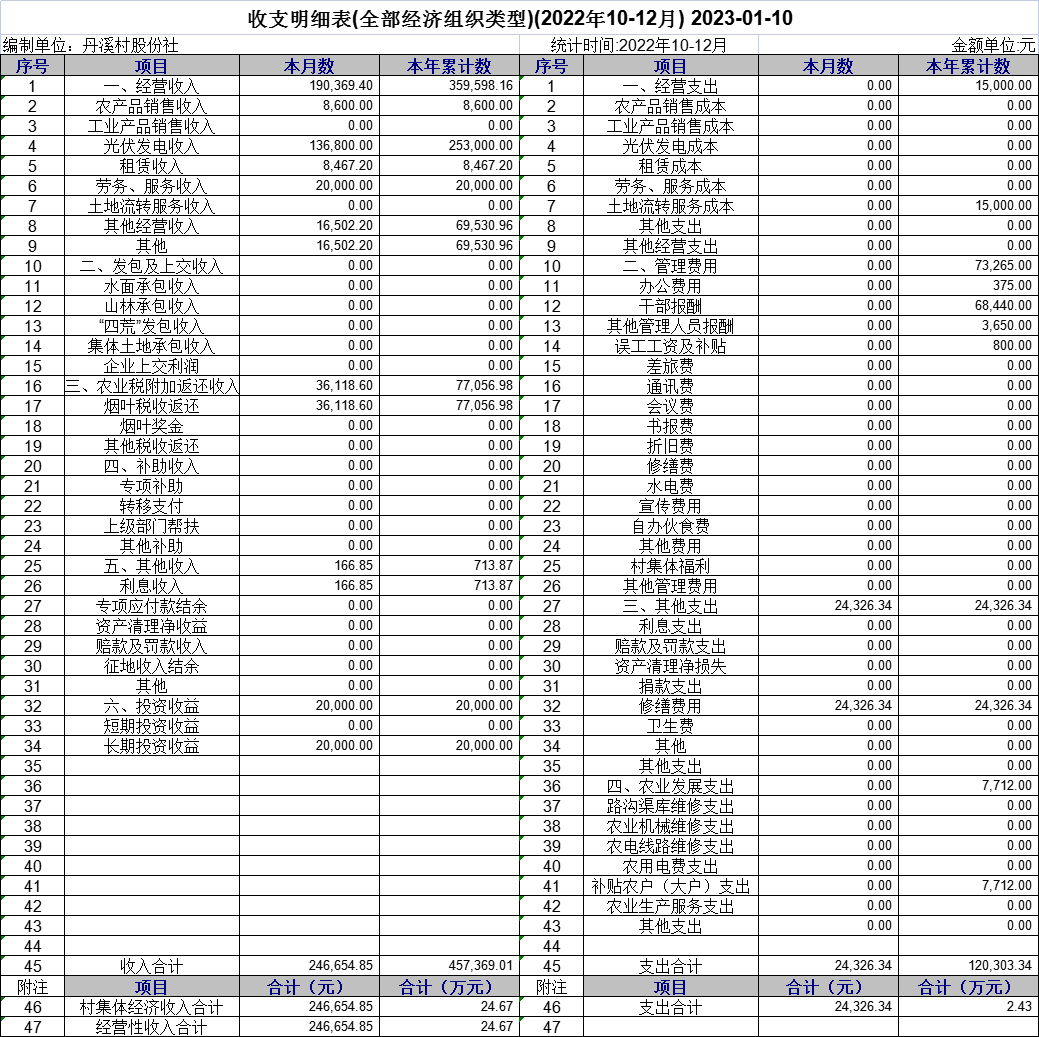 【財(cái)務(wù)收支】小松鎮(zhèn)丹溪村2022年4季度財(cái)務(wù)收支公示