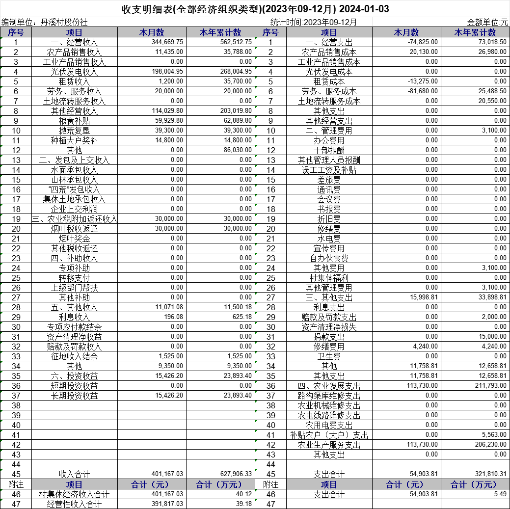 【財務收支】小松鎮(zhèn)丹溪村2023年4季度財務收支公示